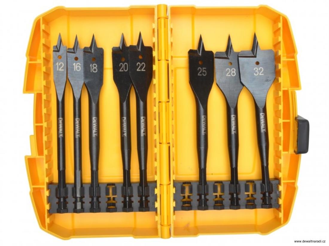 Sada 8 plochých vrtáků pro vrtání dřeva v pevném pouzdře