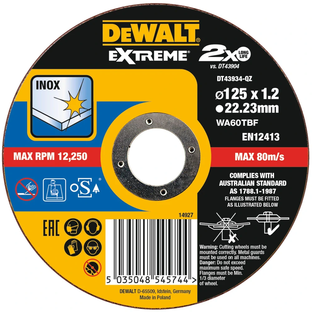 Řezný kotouč na kov a nerez DT43934 - 125 x 1,2 mmSkladem47,00 Kč/ ks38,84 Kč bez DPH